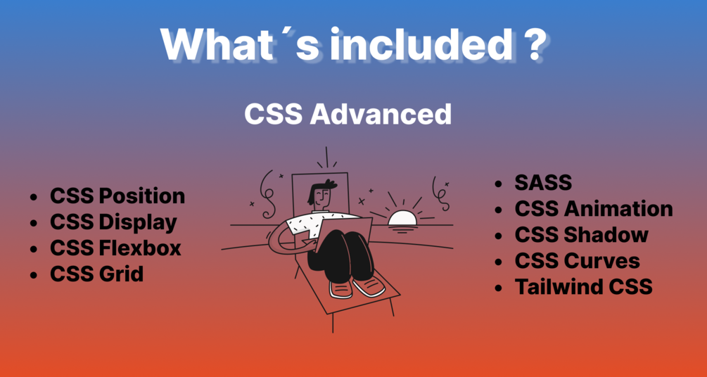 - General, Selectors, Class and ID, Color, Font, Box Model ( marding, padding, border)
