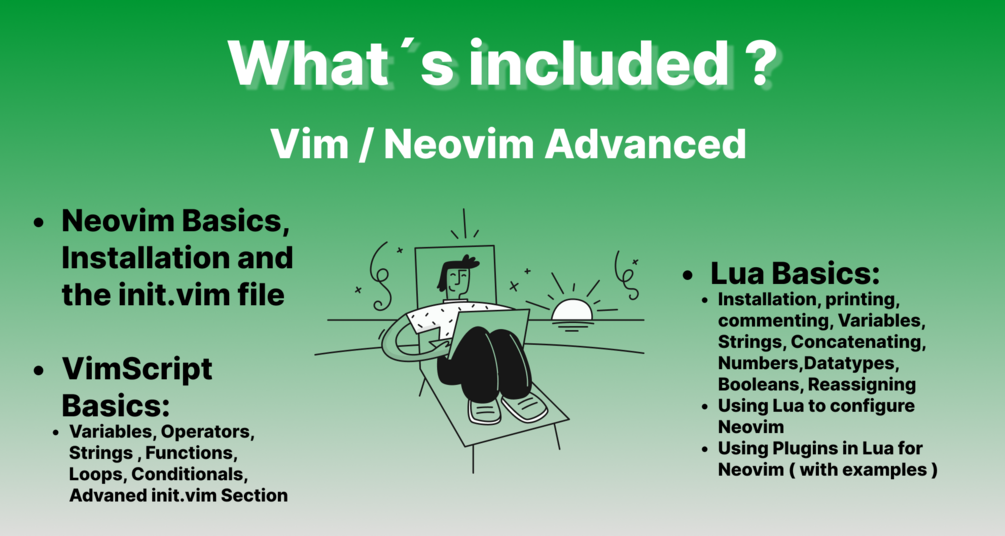 Variables, Operators, Strings , Functions, Loops, Conditionals, Advanced init.vim Section - Lua Basics: